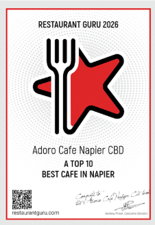 Adoro Cafe Napier Best moment of 2022. Best cafe in town to Enjoy Great coffee and amazing food selection .Lots of option for cabinet food including pastry and cakes.